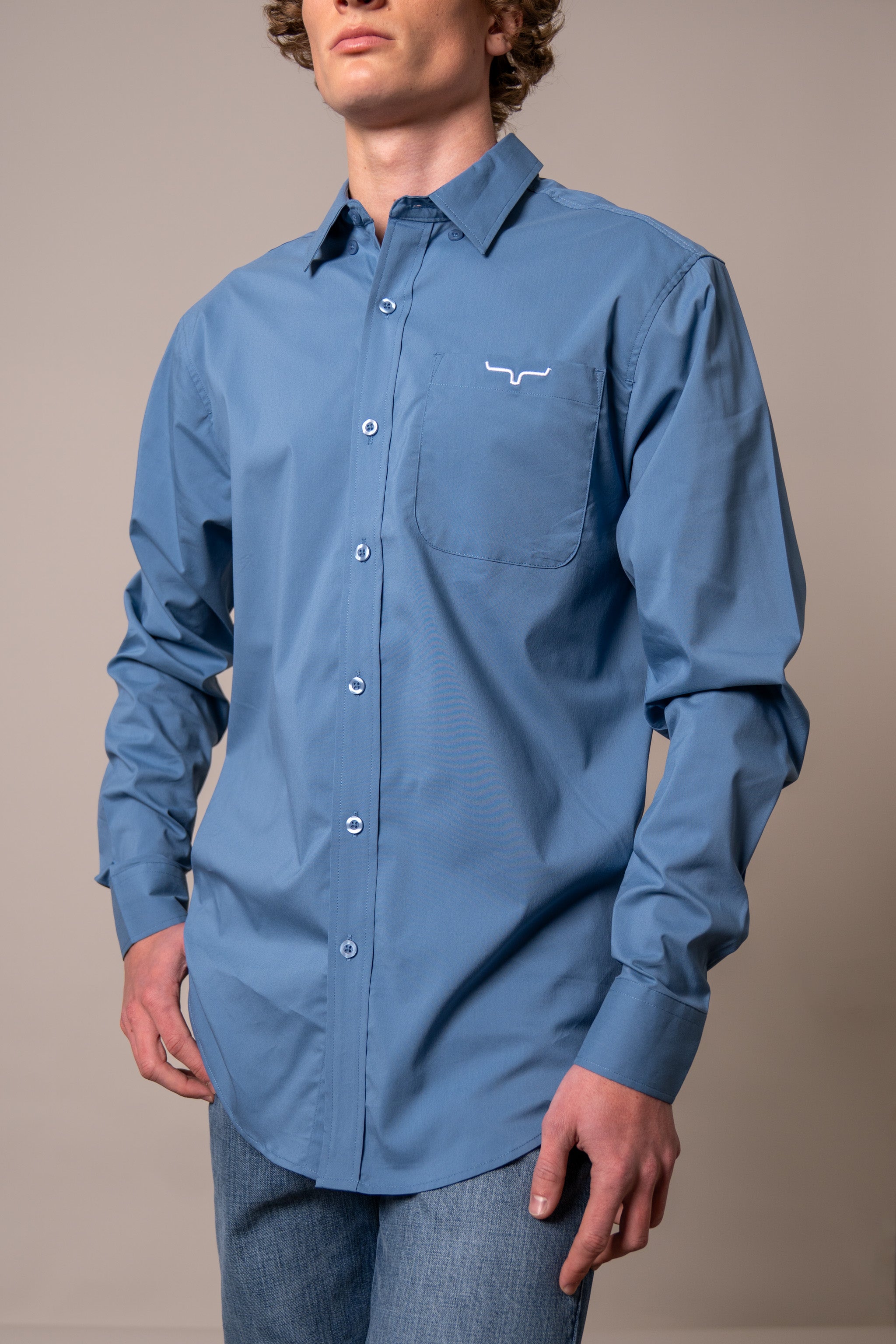 Details: Long Sleeve, Piece Dyed, Solid Cooling Fabric, Single Pocket Featuring Contrasting Embroidered Horns Logo, Button Front, Long Body and Sleeves.