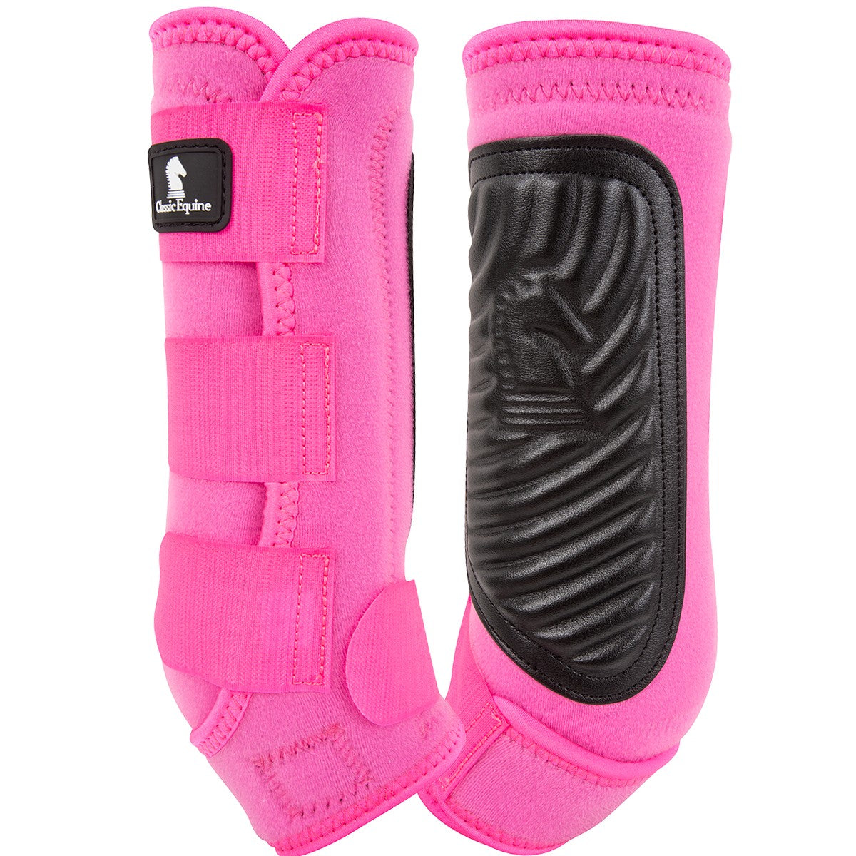 Sleek, modern fit that allows the leg to function naturally with complete lower limb protection and support. Suspensory sling is uniquely positioned for correct angle alignment to ensure lower limb support. Ergonomic design provides a clean, close fit for proper application with bound edges to keep dirt and debris out. Neoprene body and shock absorbing inner pads reduce shock from concussion. Laminated jersey lining is comfortable against the leg and will not fold, bunch, or rub.